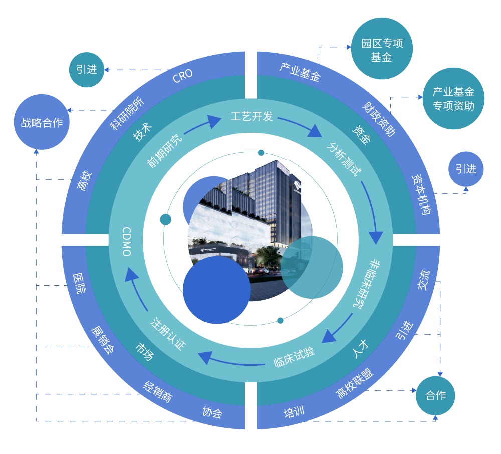 从基础研究、药物发现、CMC、非临床IND、临床研究、NDA、生产、流通到终端的全产业链生态