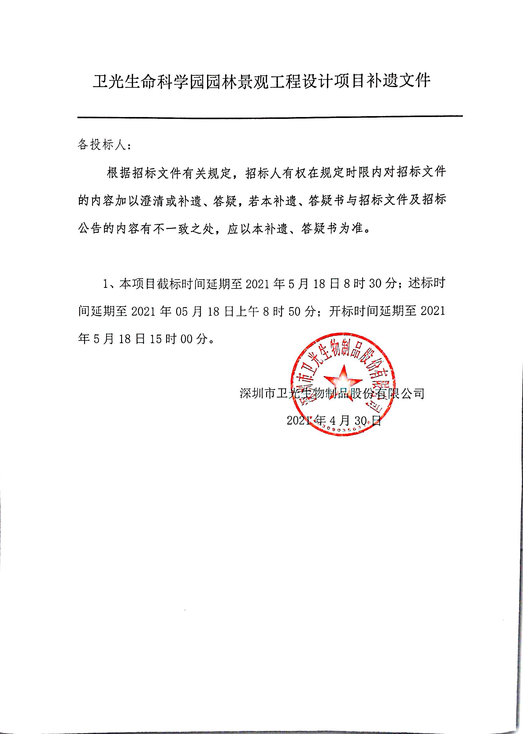 卫光生命科学园园林景观工程设计项目补遗文件(延期截标)