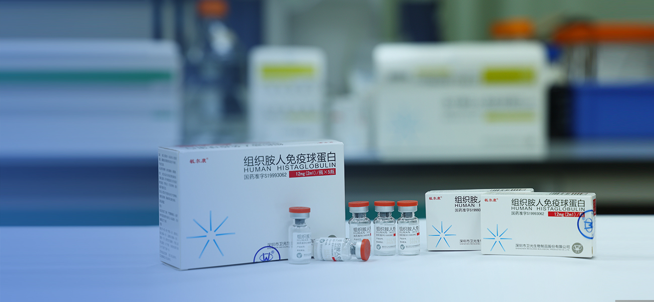 Shenzhen Weiguang Biological Products Co., Ltd. (stock code: 002880) is a national high-tech enterprise, the only blood products manufacturing enterprise in Shenzhen, and a state-controlled listed enterprise in Guangming District. Founded in 1985, the company is mainly engaged in the research and development, production and sales of blood products. Products including human albumin, intravenous human immunoglobulin, a total of 11 varieties and 23 specifications. The company has won many honors such as "Guangdong Independent Innovation Demonstration Enterprise", "Shenzhen Science and Technology Innovation Award", "Shenzhen Top 100 Quality Enterprise" and "Shenzhen Top 100 Brand".