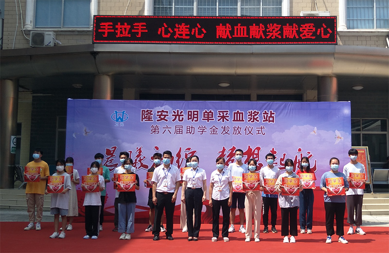 2022/1/262016年起,卫光生物定期组织开展“金秋助学活动”,由下属8个浆站为符合条件的献浆员子女提供助学金。截至2021年,共资助献浆员子女2641人,发放助学金365.02万元。