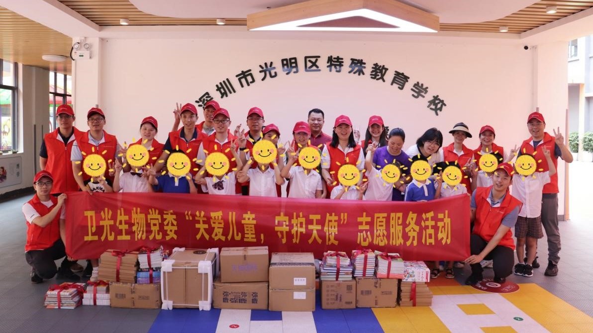 2023年6月26日下午,为弘扬新时代志愿服务精神,凝聚文明向善力量,卫光生物党委组织志愿服务队党员干部、入党积极分子、党员发展对象等17人前往光明区特殊教育学校开展“关爱儿童,守护天使”志愿服务活动,探视慰问学校特殊儿童,辅助学校教师上运动保健课程,捐赠爱心书籍、益智玩 ...